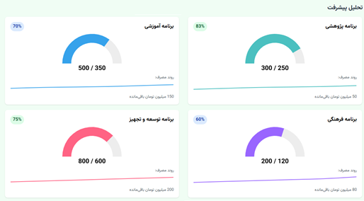 این داشبورد به سازمانها کمک میکند تا بتوانند از تمام منابع مالی جاری خود به بهترین شکل استفاده کنند و برنامهریزی دقیقی برای پایان سال مالی داشته باشند.