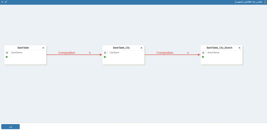 - فیلد BankName از جدول حاوی نام بانک ها که هنگام ساخت مدل داده پایه مورد استفاده در بالاترین سطح ایجاد شده است انتخاب شده است.