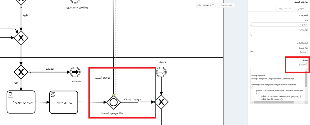 سپس در مسیرهای بعد از درگاه جامع با توجه به مسیرهای مورد نظر (شکل 3) و با توجه به پارامترهای خروجی ذکرشده، در قسمت شرط کد زیر را قرار میدهیم: