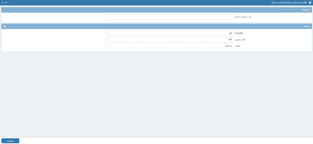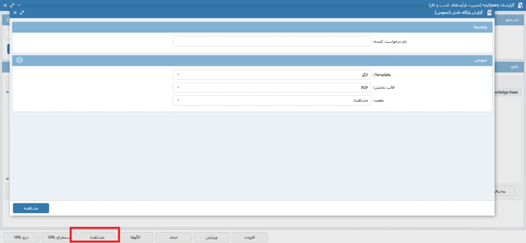 جهت دریافت خروجی از گزارش ایجاد شده با استفاده از گزینه مشاهده این امکان وجود دارد. تصویر16
