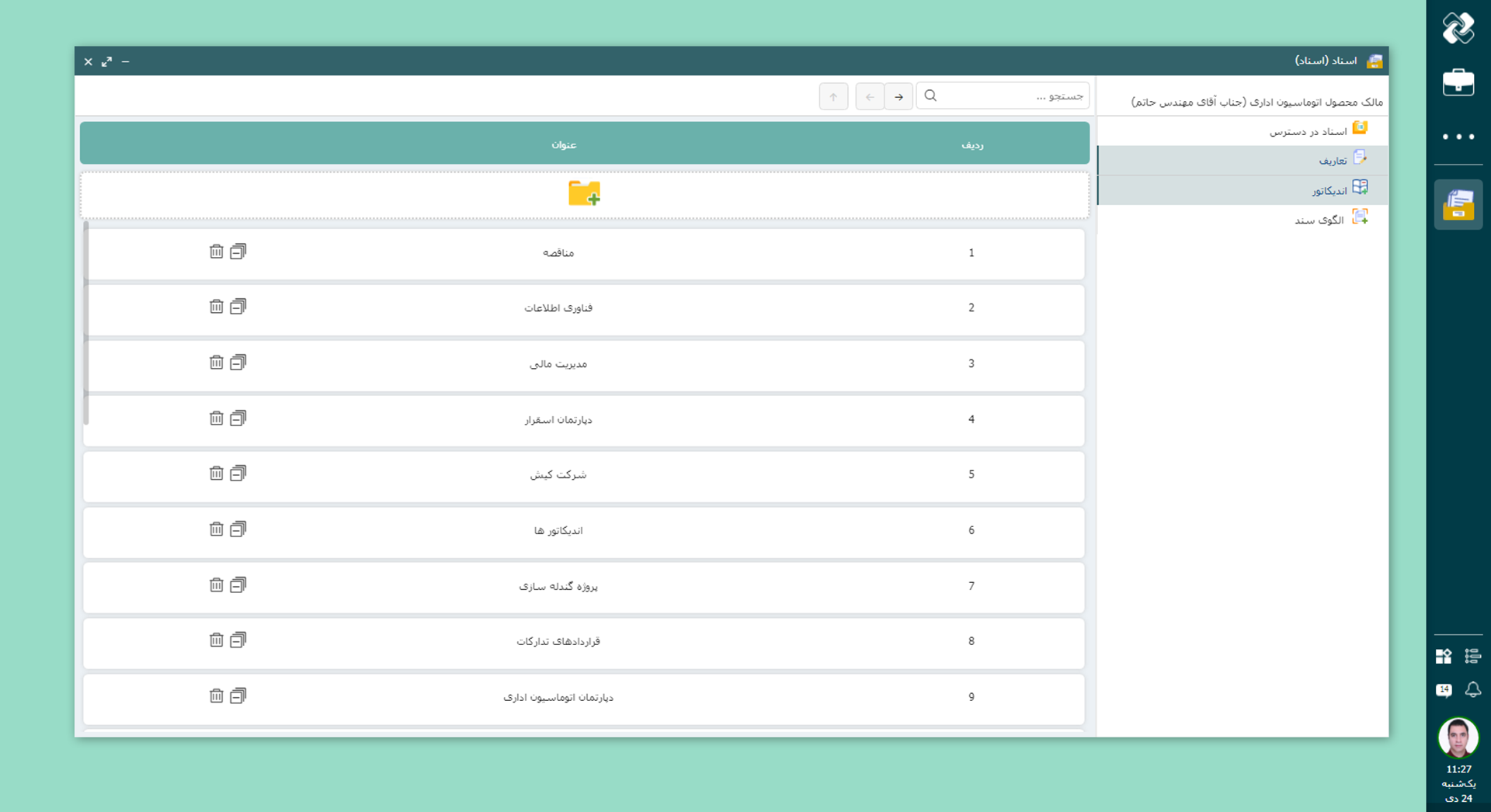 با تنوع و حجم بالای اسناد در سازمانها، داشتن محیطی منظم و در دسترس ضروری است. نرمافزار اسناد دیدگاه با ساختار درختی قابل تنظیم، امکان ایجاد پوشهها و زیرپوشههای چندسطحی را فراهم میکند تا اسناد بهصورت متمرکز و منسجم نگهداری شوند. این ساختار انعطافپذیر، هم قابلیت سفارشیسازی کامل دارد و هم زمینه را برای دستهبندی دقیق و یافتن سریع اطلاعات مهیا میکند.