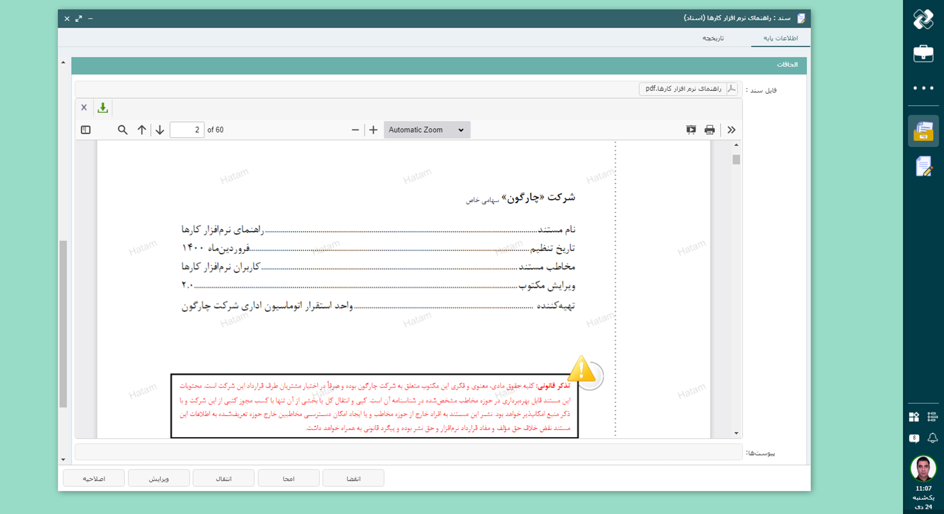 بسیاری از اسناد تنها برای مدت مشخصی اعتبار دارند. در این نرمافزار میتوان تاریخ انقضای سند را هنگام ثبت یا از طریق الگو تعیین کرد. با رسیدن این تاریخ، سند بهصورت خودکار از چرخه انتشار خارج میشود یا هشدار لازم به مدیر مسئول ارسال خواهد شد. این قابلیت تضمین میکند که کاربران همواره به محتوای معتبر و بهروز دسترسی داشته باشند.