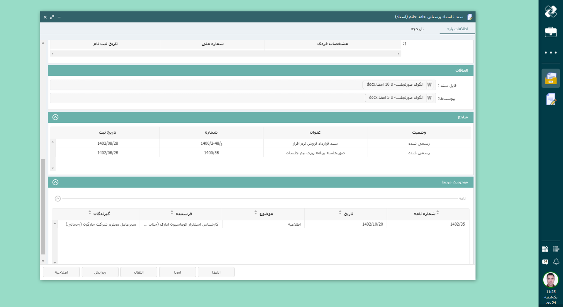 نامههای ثبتشده در «مکاتبات» میتوانند به سند رسمی در «اسناد» تبدیل و بهعنوان پیوست استفاده شوند.