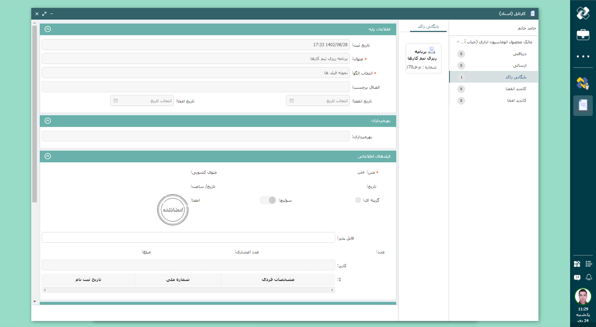 بله، این نرم افزار قابلیت یکپارچهسازی با نرم افزار جلسات، مکاتبات اداری و... را دارد و میتواند با سیستمهای موجود در سازمان شما هماهنگ شود.