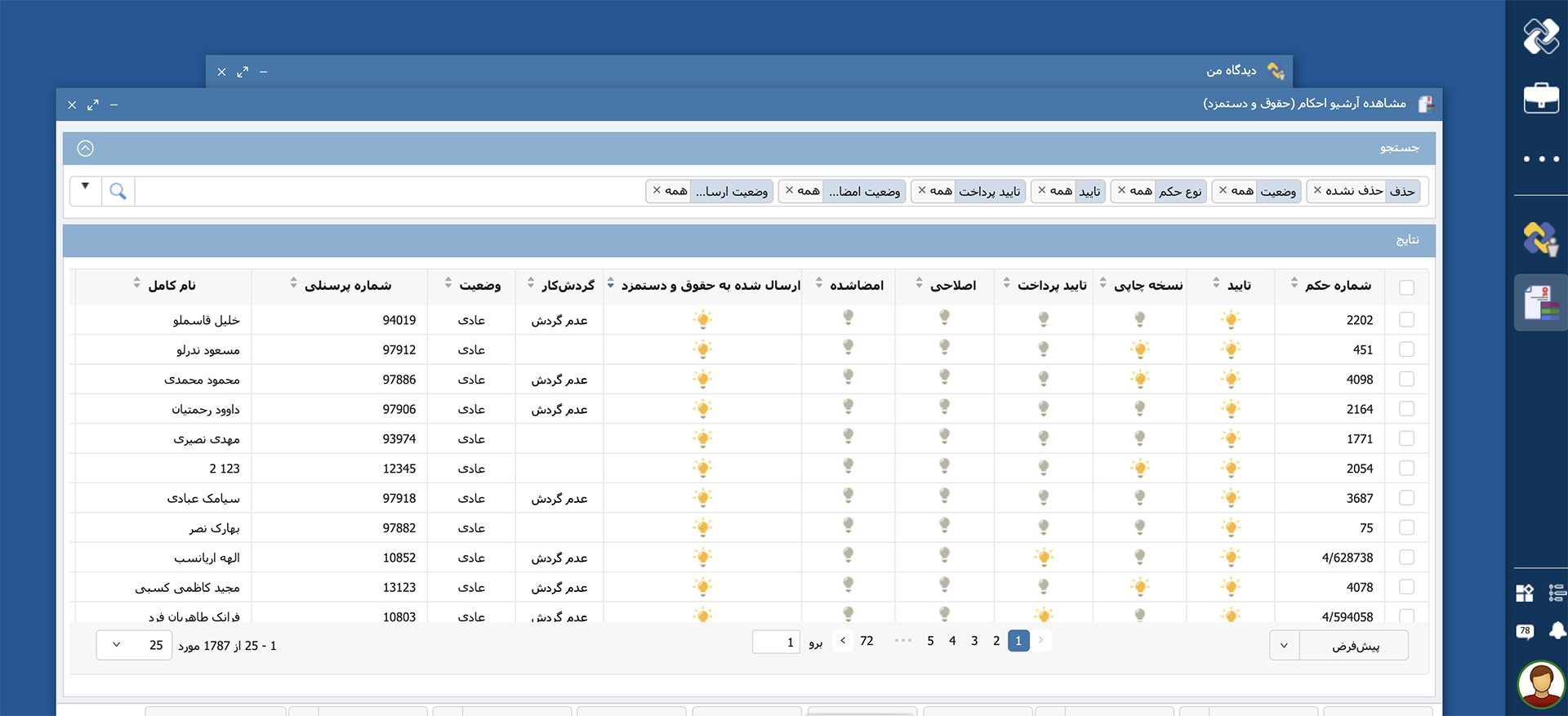 سازمان میتواند فیش حقوقی را مطابق با استاندارد و سلیقه خود طراحی و ویرایش و بهطور کامل احکام و فیشها را در آرشیو دیجیتال ذخیره کند. قابلیت جستوجو در این آرشیو، دسترسی سریع به سوابق را فراهم میکند و باعث ایجاد یک بانک اطلاعاتی هوشمند و منظم برای مدیریت حقوق و مزایا میشود.