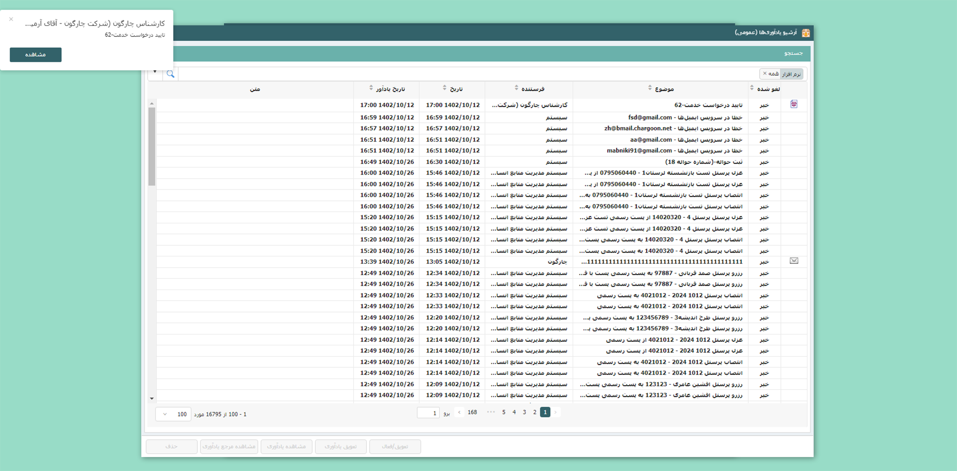 سطوح دسترسی به شکلی تنظیم میشود که فقط افراد مجاز به اطلاعات دسترسی داشته باشند. وضعیت درخواستها در هر لحظه برای درخواستدهنده قابل مشاهده است، این امر شفافیت را افزایش میدهد و نیاز به تماسهای مکرر حذف میشود.