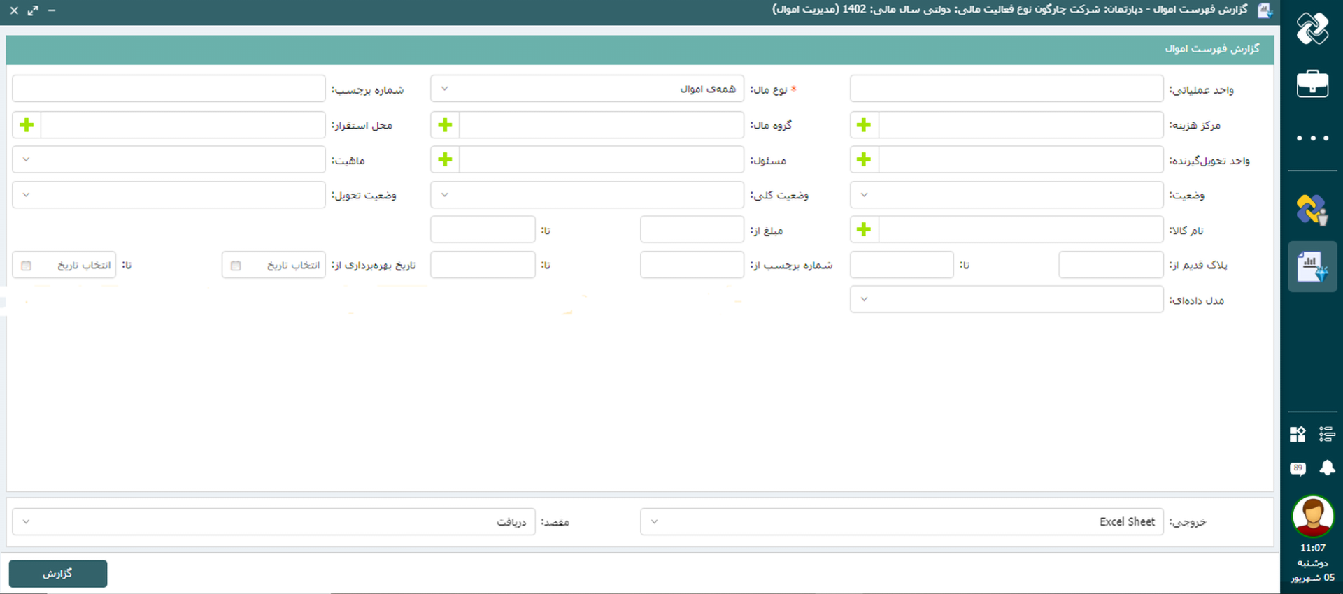 نمای کلی و جزئی اموال، شامل وضعیت ریالی و تعدادی و اموال بدون استفاده، در یک صفحه ارائه میشود تا مدیران بر پایه داده واقعی تصمیم بگیرند.