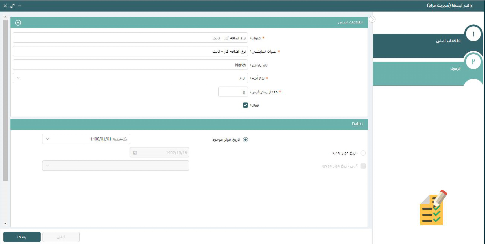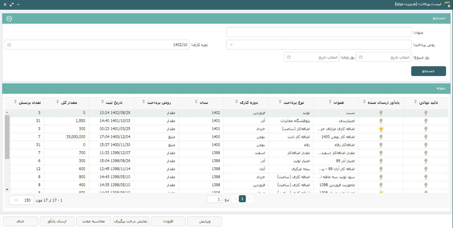 انتقال خودکار جزئیات مزایا و پاداشها برای محاسبه در حقوق ماهانه