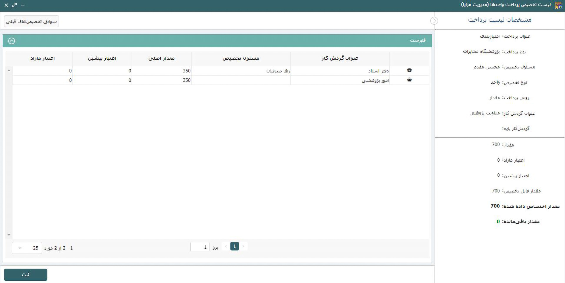 ثبت و بستن سندهای مالی مربوط به مزایا