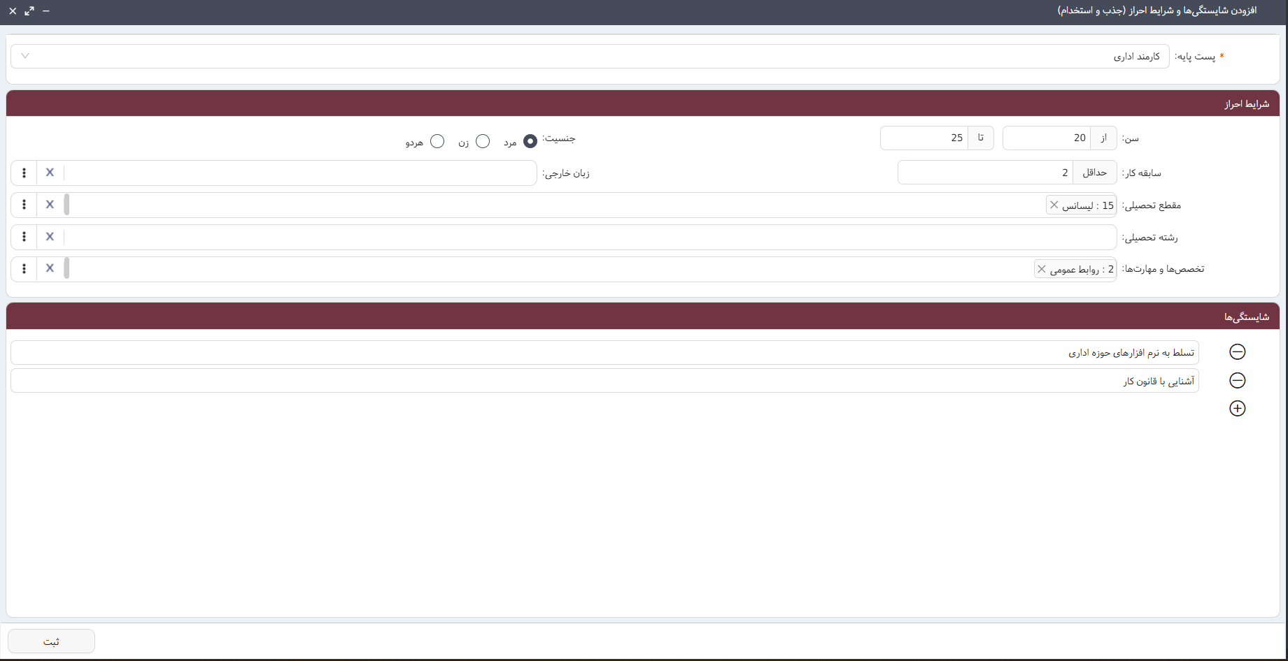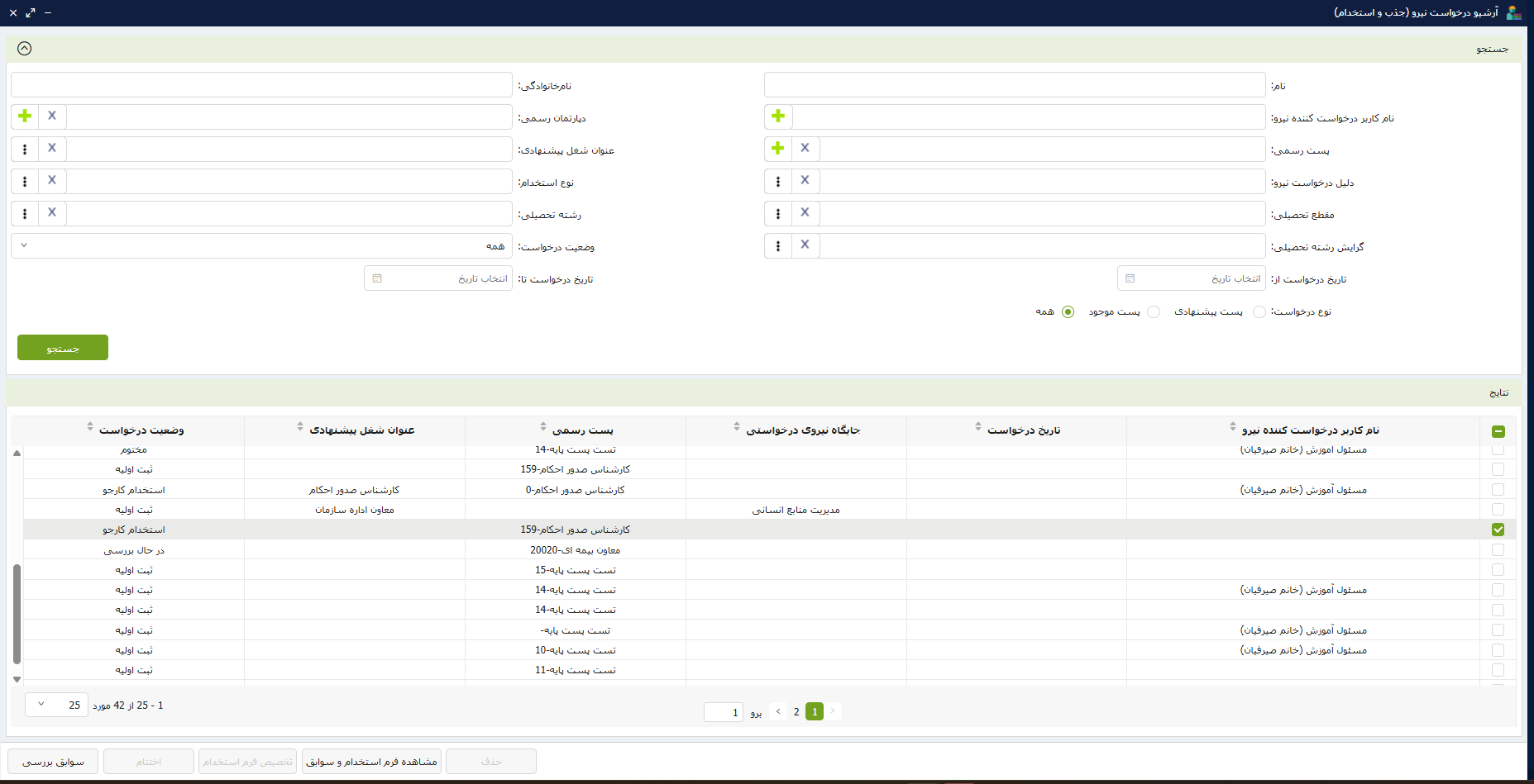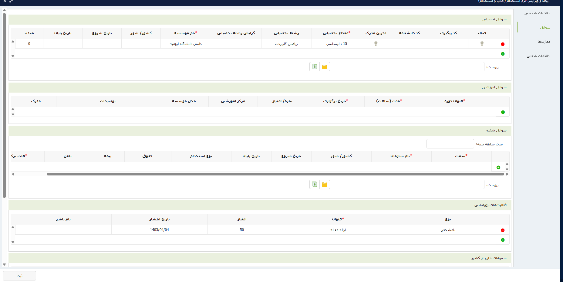 انتقال خودکار سوابق و اطلاعات کارجویان پذیرفتهشده به پرونده پرسنلی