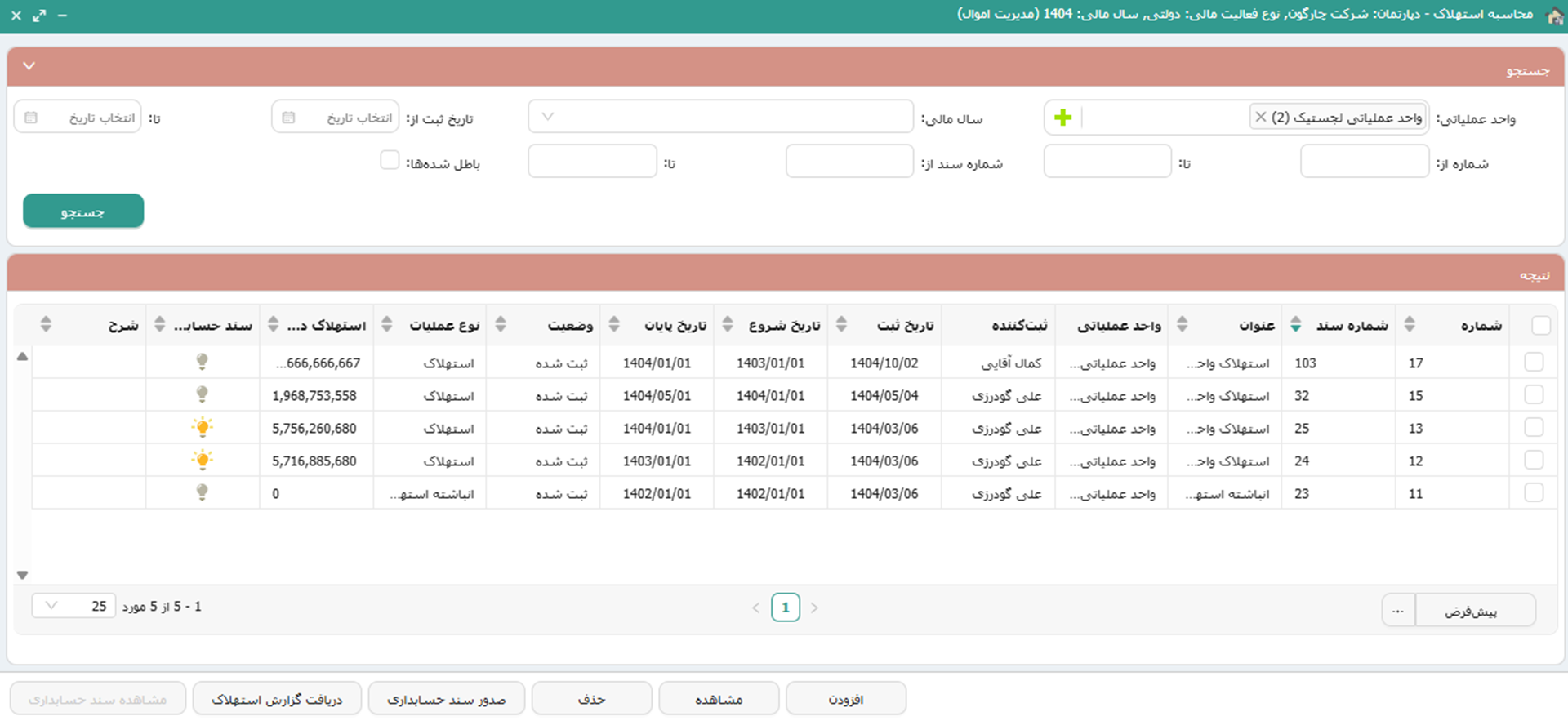 داراییهای سرمایهای با گذشت زمان و استفاده، کاهش ارزش یافته و مشمول استهلاک میشوند. محاسبه استهلاک بر اساس روشهای استاندارد مورد تأیید قوانین مالیاتی انجام شده و نتایج آن در قالب اسناد حسابداری در سیستم مالی ثبت میشود. این مرحله برای مدیریت دقیق داراییها، پاسخگویی به حسابداران، رعایت الزامات قانونی و بستن سال مالی اهمیت بالایی دارد و به شفافیت و اعتبار دادههای مالی سازمان کمک میکند.