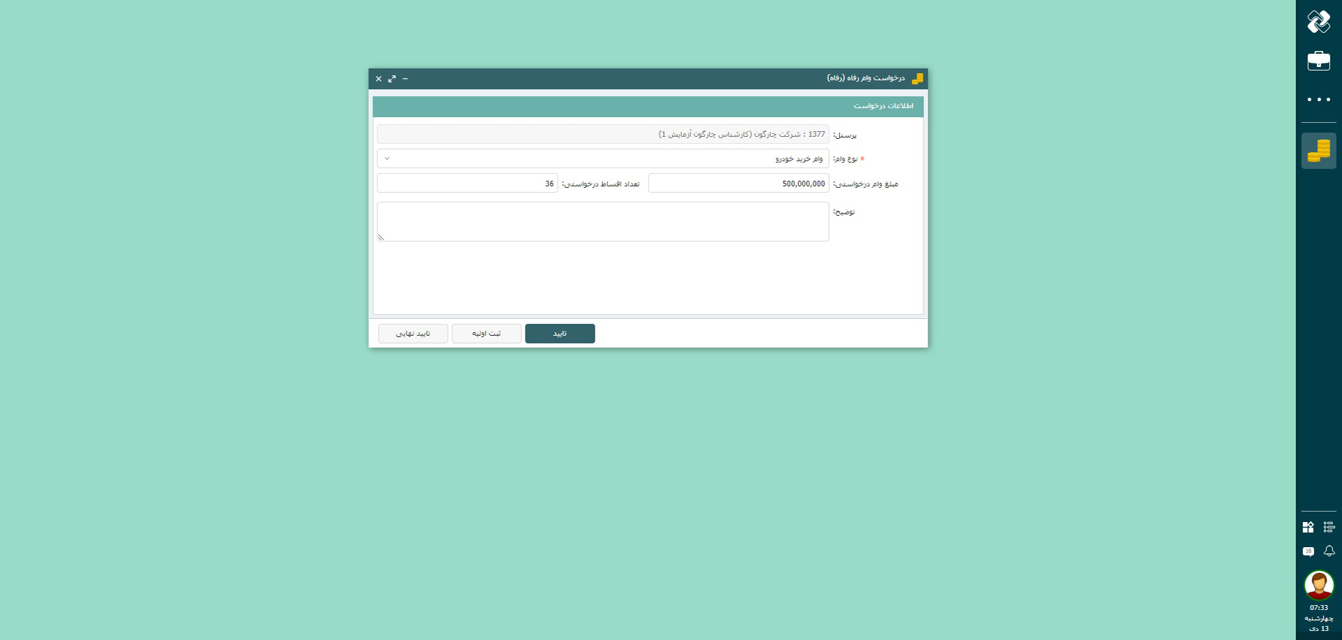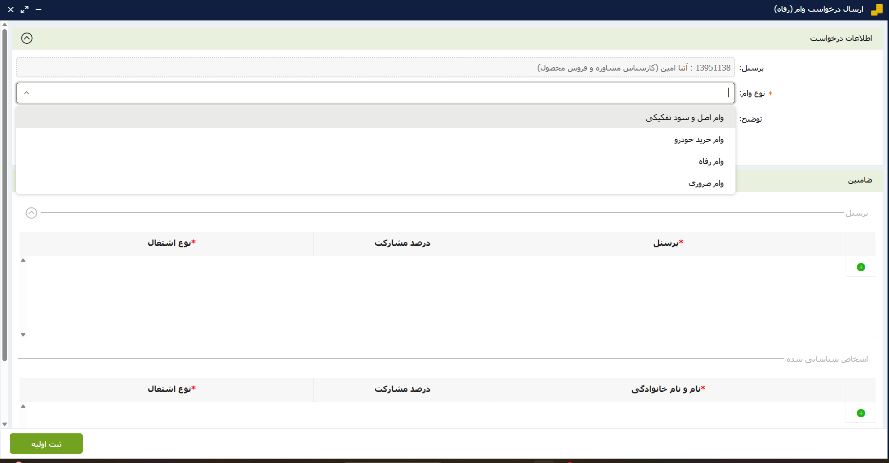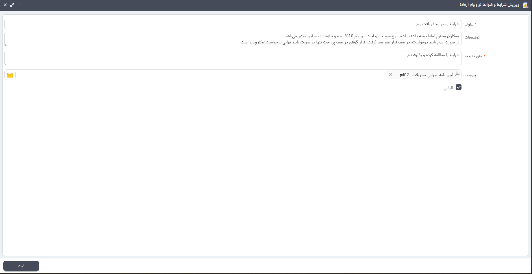 ثبت و مدیریت درخواست وام