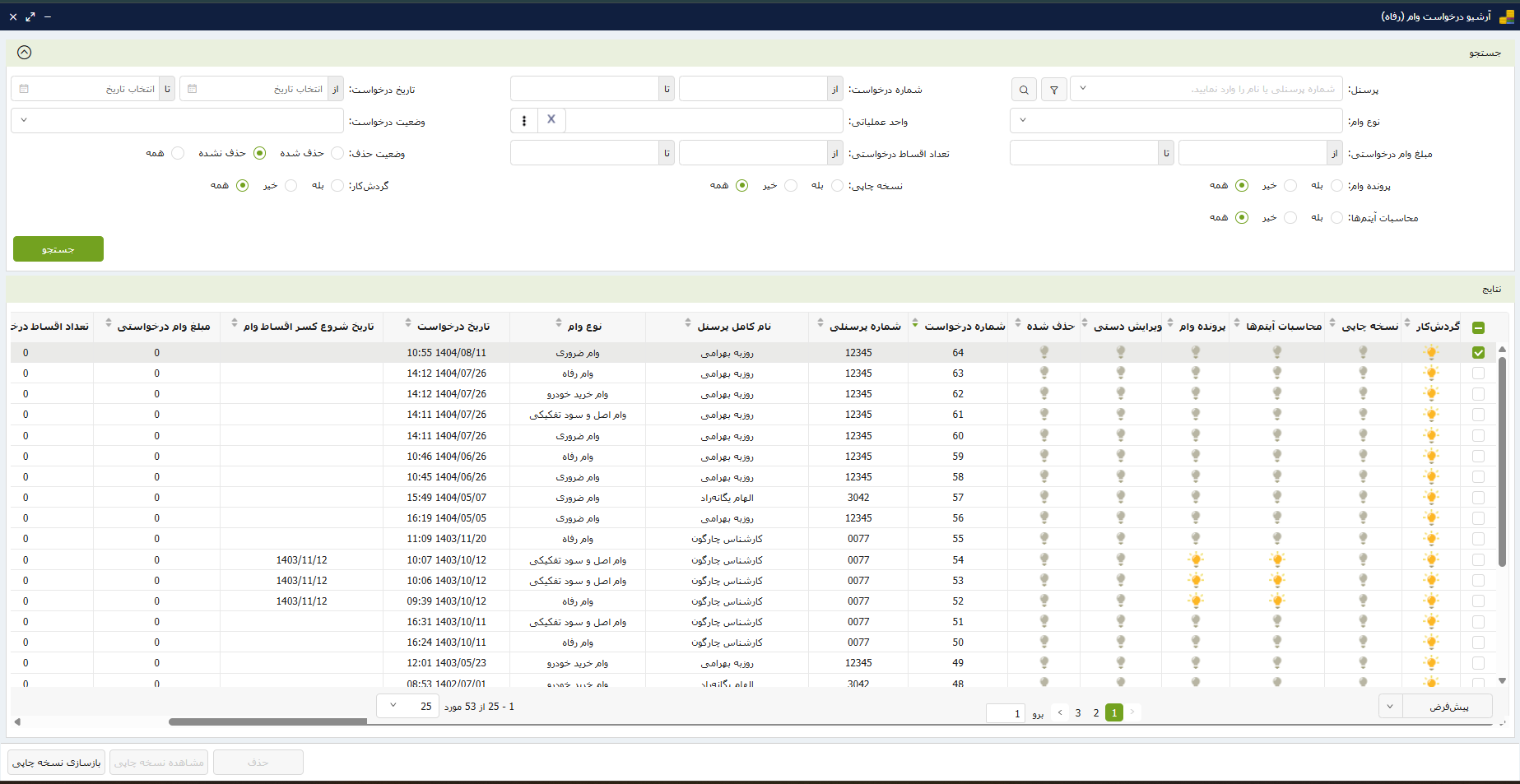 بله. پرسنل میتوانند آنلاین درخواست وام را ثبت و مدارک لازم را بارگذاری کنند. تمام مراحل بهصورت سیستمی، بدون نیاز به هیچ مراجعه حضوری، پیش میرود.